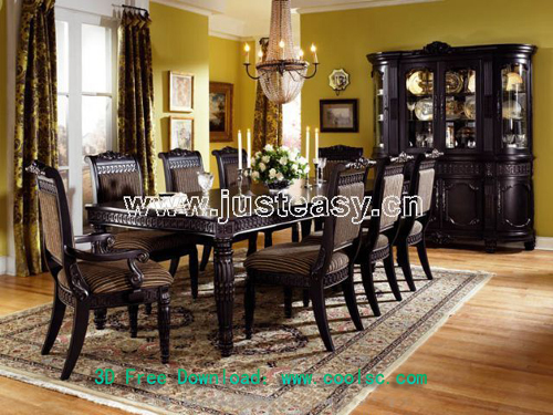 Description:Siwei Lan - dining table and chair combinations, European furniture, dining tables, chairs, tables, chairs, model download, 3D models